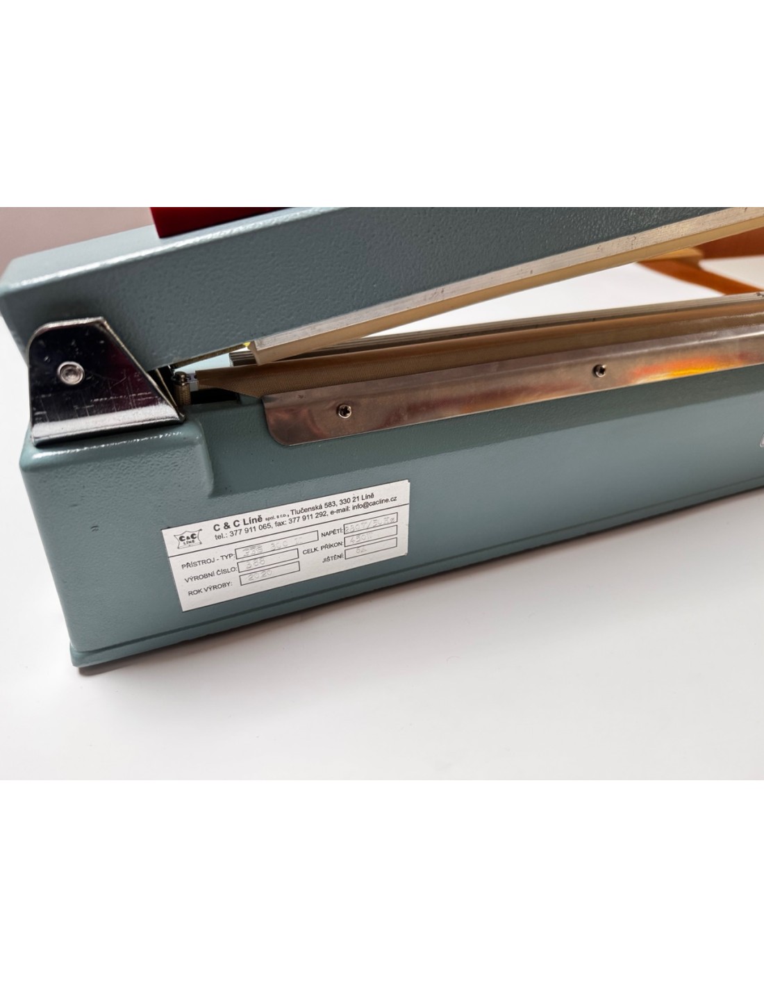 Páková impulsní svářečka se svárem do 300 mm s ořezem nad svárem.
